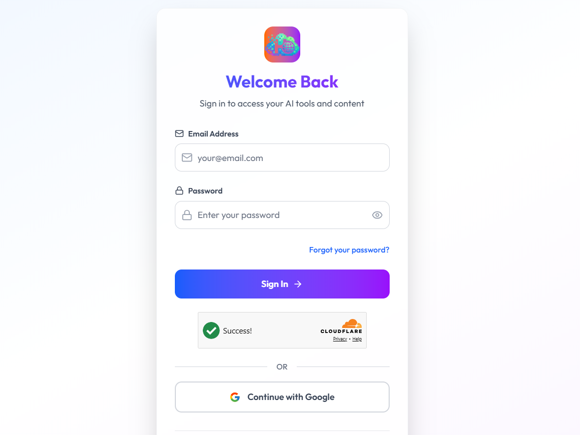 You can also sign in with Continue with Google — faster and no new password to remember.