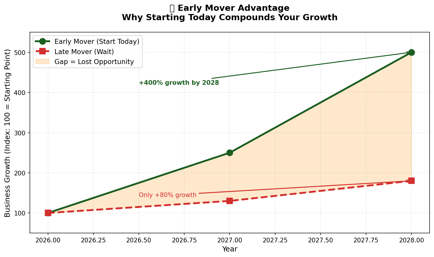 Figure 4: Early Mover Advantage. Starting today compounds your growth over waiting.