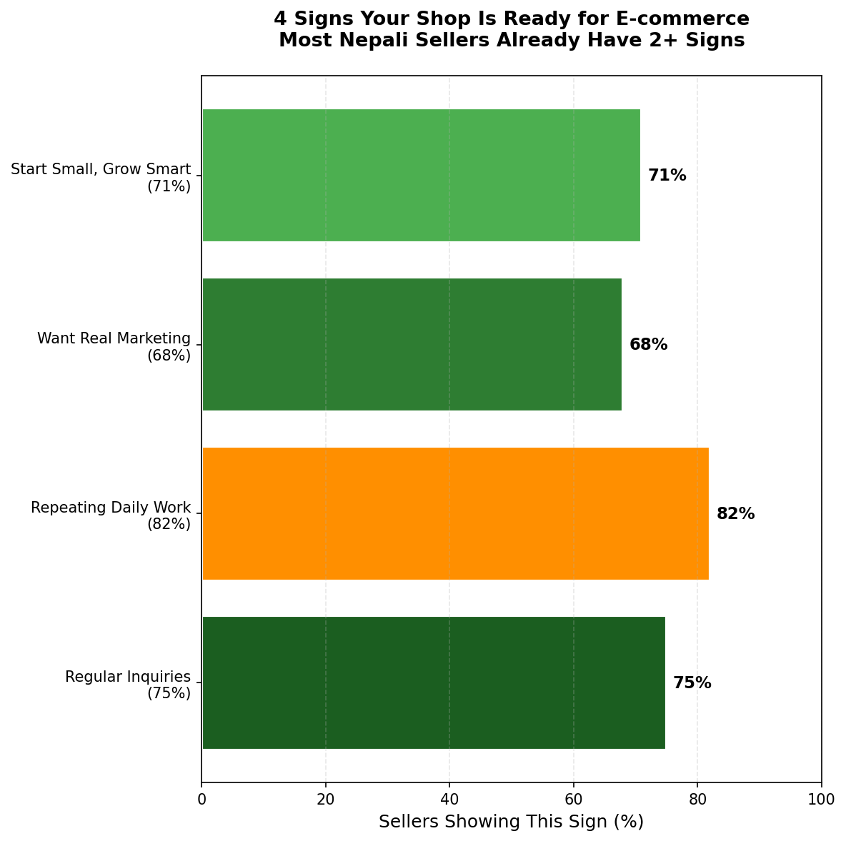 Figure 3: 4 Signs Your Shop Is Ready for E-commerce. Most Nepali sellers already show 2+ signs.